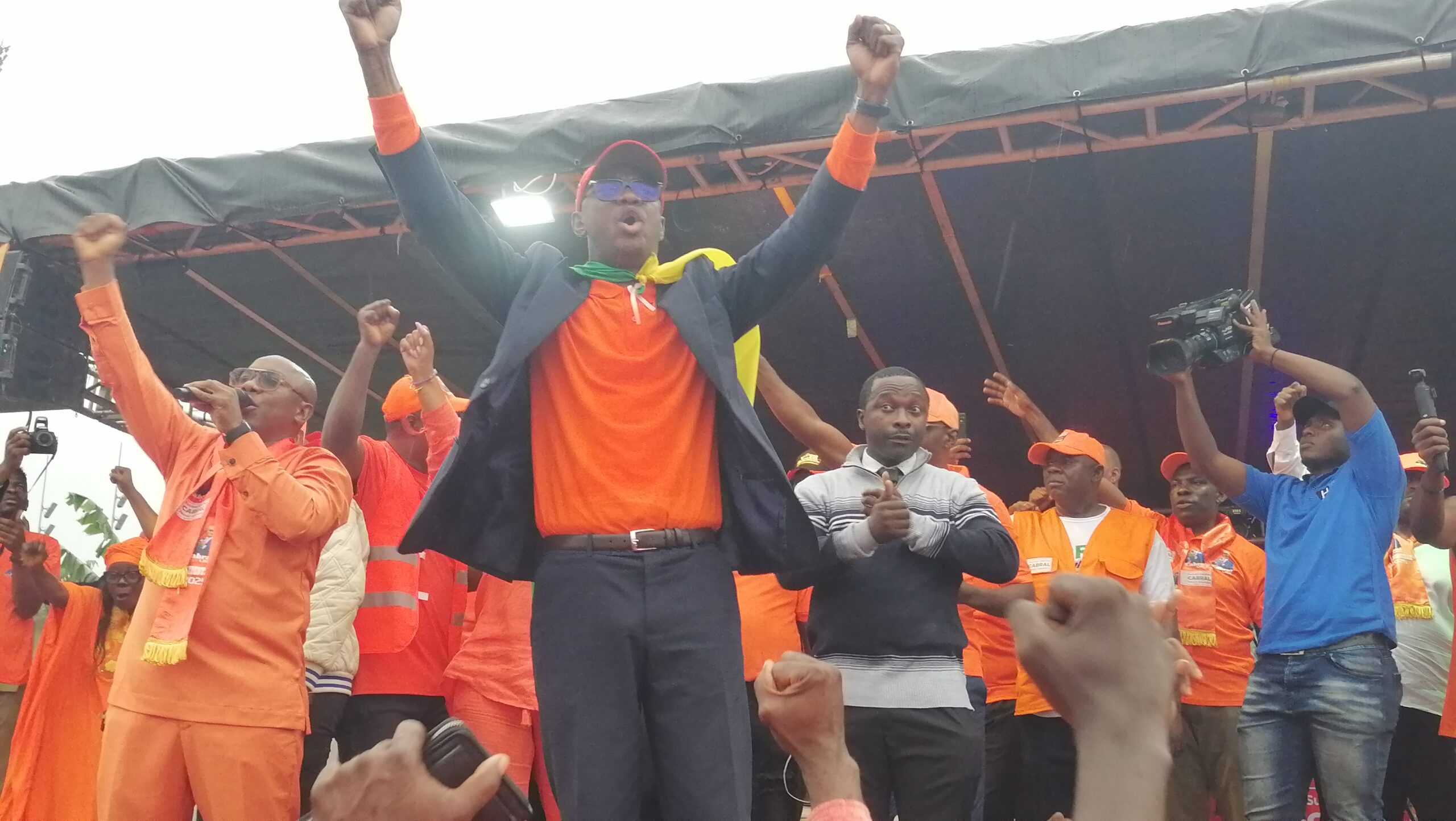 La foule n’avait d’âme que pour le Candidat du PCRN. “Libii, Président! Libii, Président! Libii, Président!!!!” pouvait-on entendre à répétition. Côté artistique, plusieurs artistes se sont engagés pour le “Candidat du Travail” en composant des chansons exclusives pour Cabral Libii et le PCRN. Des Chanteurs et des humoristes ayant pris fait et cause pour le leader de la Coalition Orange, ont accompli leur mission quotidienne ce jour-là. Dans leurs prises de parole, les humoristes Moustik le Karismatik et Markus ont appelé la jeunesse à la une prise de conscience responsable, en votant pour le candidat de la Rupture et du Progrès. Après Moustik le Karismatik qui a invité les camerounais à voter Cabral Libii pour contribuer au changement, c’était au tour de Markus, d’appeler ses concitoyens à faire de prise de conscience et de voter le Candidat de la Coalition Orange.