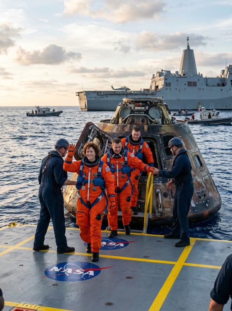 Artemis II a amerri à 20h07 le 10 avril dans l’océan Pacifique, au large de San Diego. Après l’amerrissage et la récupération, les quatre membres d’équipage ont subi des examens médicaux post-mission avant de regagner la terre ferme et d’embarquer à bord d’un avion à destination de Houston. À leur arrivée, ils ont retrouvé leurs familles, leurs amis et les membres de l’agence spatiale. L’équipage va maintenant entamer sa convalescence, ses examens médicaux et de performance humaine, ainsi que les débriefings scientifiques sur la mission lunaire.