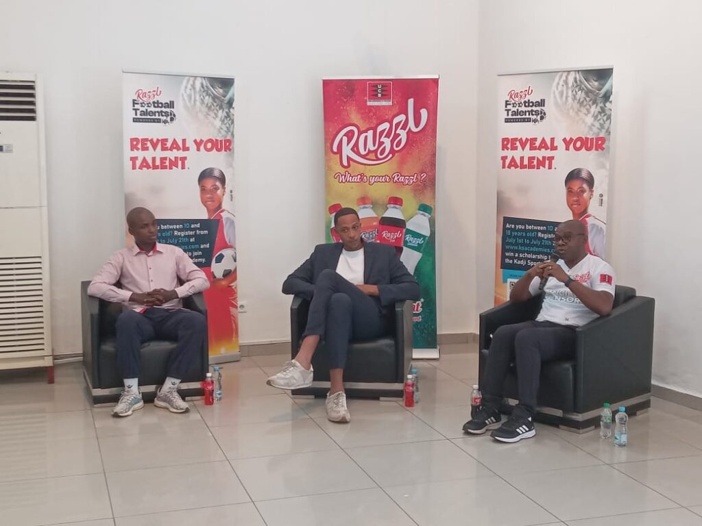 La conférence de presse de lancement s’est tenue ce jour à Douala. Face à la presse à Bonapriso, Francis Mbongue (responsable marketing de UCB), Kenneck Kadji, (Directeur Général Adjoint de la KSA), et Dominique Mpako (Responsable administratif KSA), annonçaient le lancement effectif du programme et répondaient aux questions des journalistes. D’après le Directeur Marketing et innovation de l’Union Camerounaise de Brasseries, la société à travers sa marque Razzl, qui a dans son ADN la volonté de faire éclore les talents de Football, veut davantage ouvrir les portes aux talents africains, “nous avons voulu créer une plate-forme qui donne la possibilité aux talents de s’exprimer, et nous avons choisis, pour ce faire, de travailler avec la Kadji Sport Academy, qui est déjà dans le recrutement des talents depuis plus de 30 ans” a-t-il déclaré Francis Mbongue.