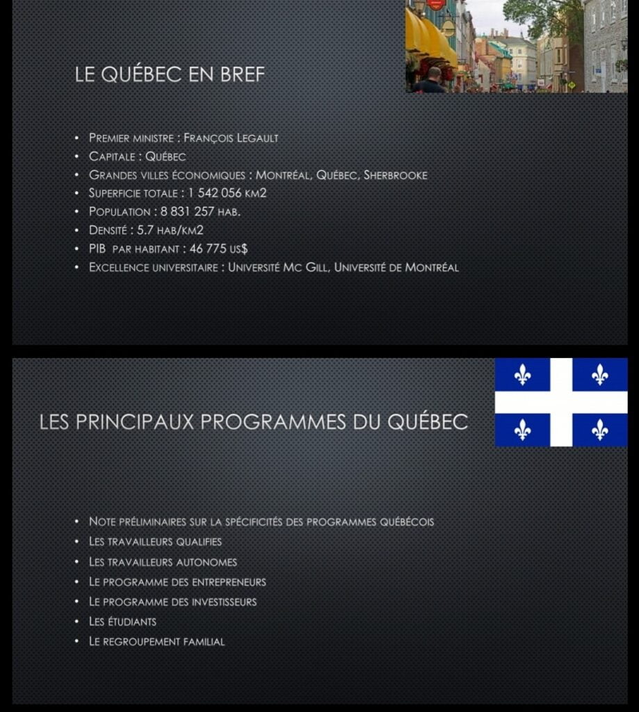 Les deux conférenciers ont exposé sur les principaux programmes fédéraux d’immigration et également les programmes de la province du Québec. Dans l’ensemble, le Canada accueille des immigrants à travers 4 programmes fédéraux, c’est à dire dans tout le Canada, et 6 programmes du Québec, et donc seulement dans le province du Québec. À l’échelle nationale, le Canada dispose des programmes : Express Entry, pour Les travailleurs qualifiés, le Programme des Travailleurs Autonomes, le Programme de Démarrage d’Entreprise appellé Star Up visa, le Programme de Mobilité internationale.