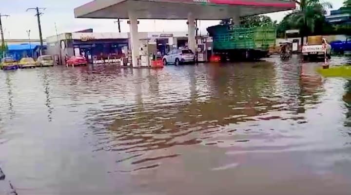 En images, on aperçoit des élèves dans des mares d’eau sans souliers, à la sortie des classes. Le long du trottoir au niveau de la nouvelle route inondé, il faut se mouiller les pieds et ne pas s’exposer aux accident de circulation. Presqu’impossible de cheminer sans se faire éclabousser par les véhicules en mouvement. Les supermarchés, et stations services également noyés. Pour carburer les chauffeurs doivent patienter, jusqu’à ce que l’eau s’estompe. À l’entrée du supermarché, les clients se déchaussent pour y avoir accès, les véhicules et mototaxis se démerdent à leurs niveaux afin de s’introduire.