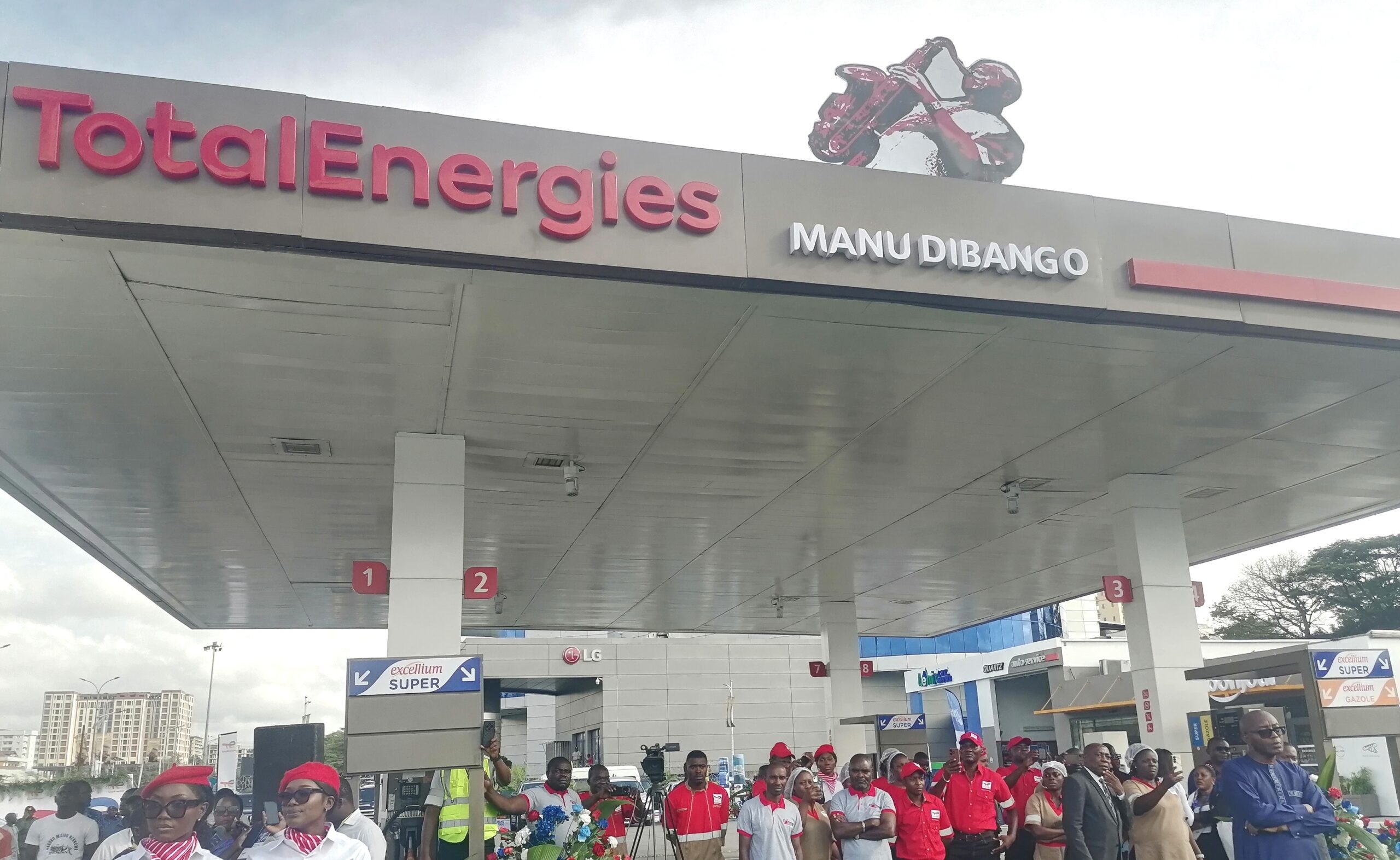 L’une de ses multiples stations service , située à la Bessèkè récemment baptisée par le maire de la ville « Boulevard du Ngondo » , a été baptisée TotalEnergies Manu Dibango. Pour son identification, TotalEnergies Manu Dibango est orné d’un petit monument métallique accroché sur le haut de son portique, et une fresque peinte sur son mur latéral.